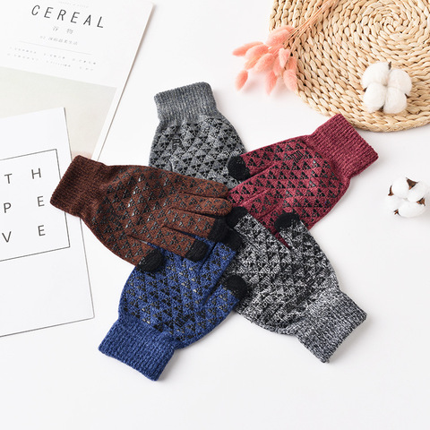 Wholesale Autumn and Winter Warm and Cold Resistant Thick Touch Screen Gloves, Knitted Yarn Driving and Cycling Finger Gloves